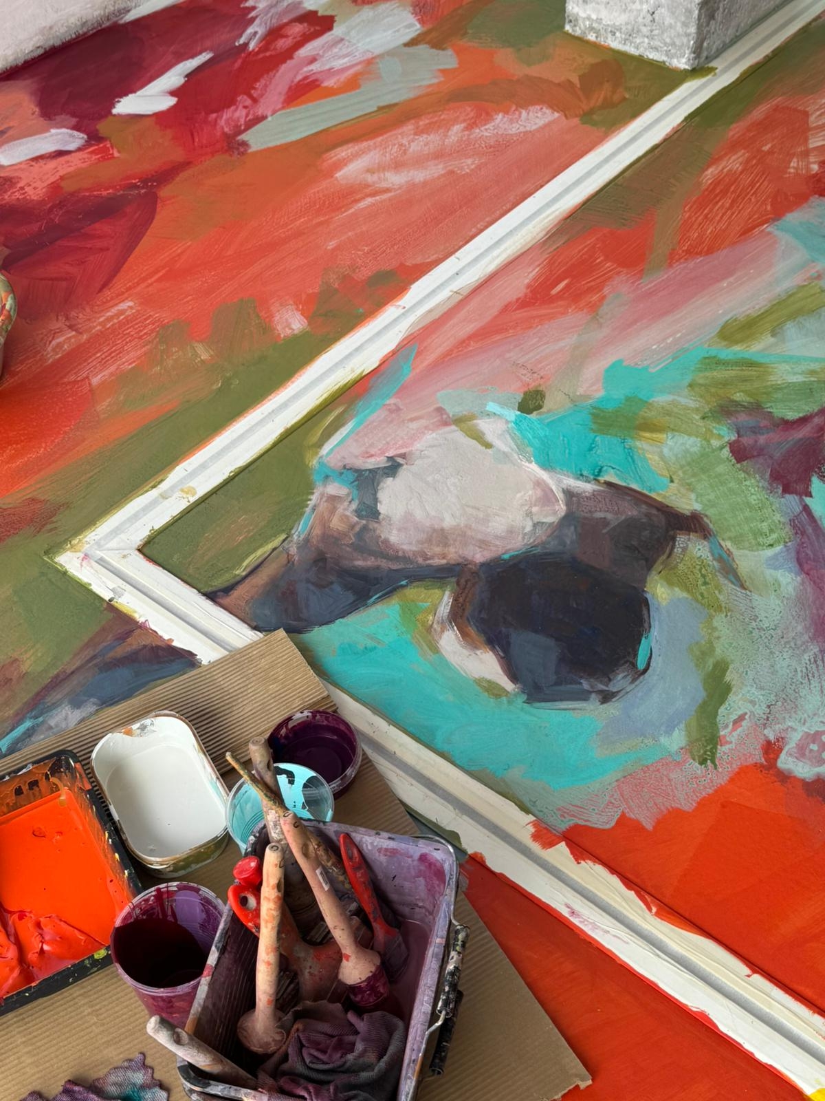 Junto a otros 4 artistas, realizamos una obra de arte en el suelo de una vivienda particular. Un reto y una ilusión.