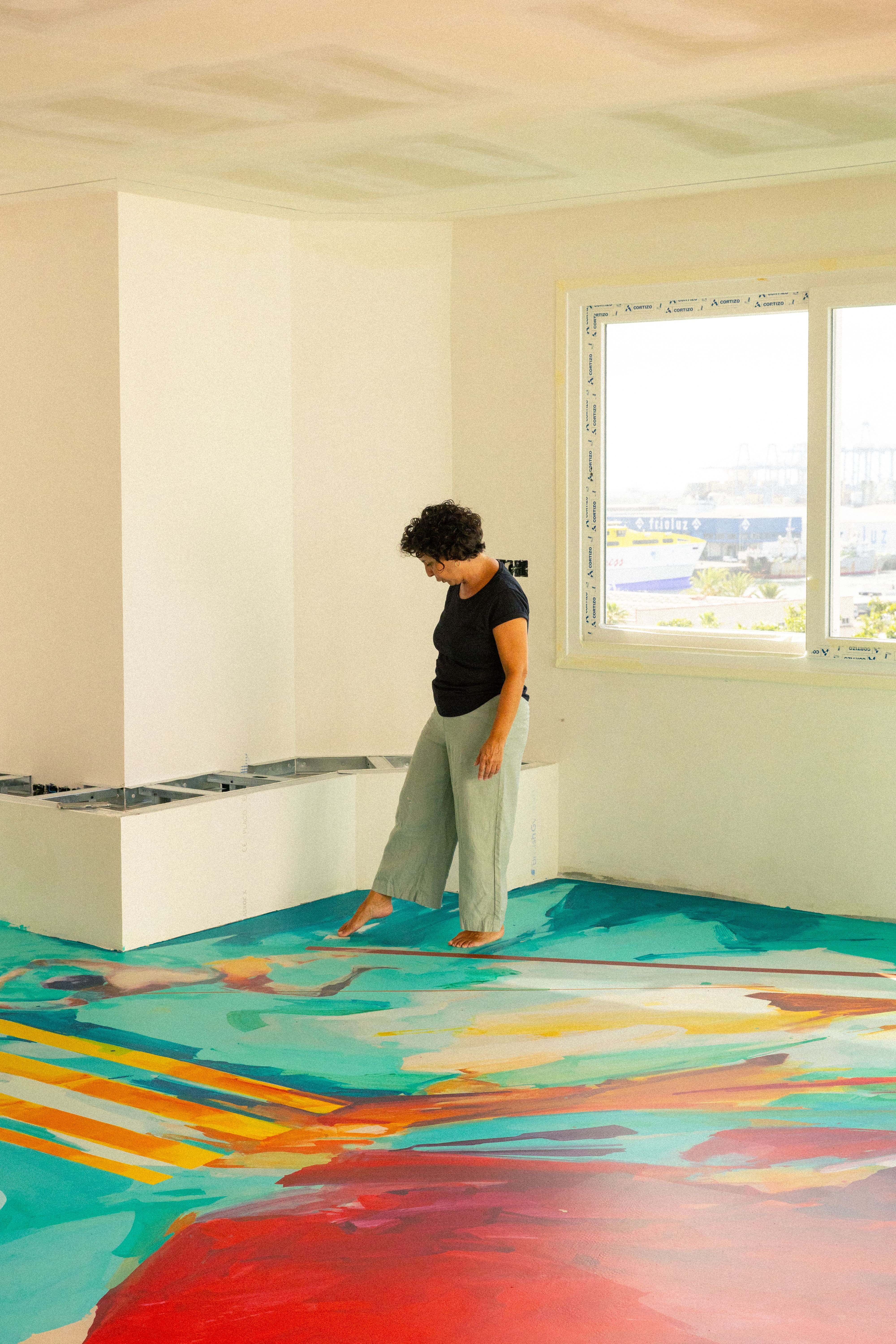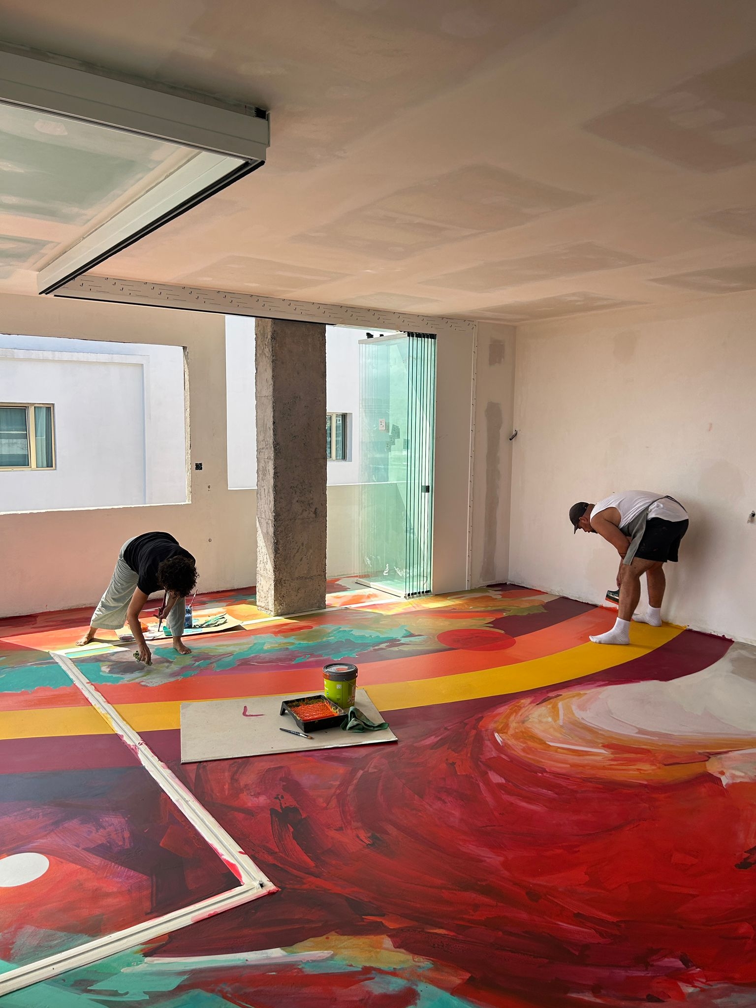 Junto a otros 4 artistas, realizamos una obra de arte en el suelo de una vivienda particular. Un reto y una ilusión.